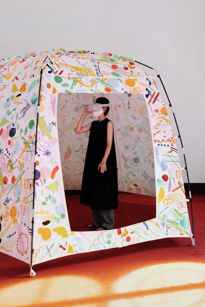 우리의 탄생지 Our Birthplace, 2021, Interactive VR experience, Digital printed fabric on the ready-made tent frame, Dimensions Variable