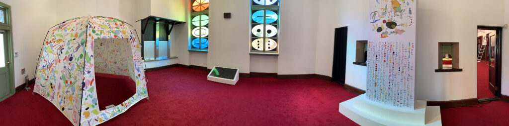 ‘Our Birthplace’ is a spatial map on which language, sense and emotions are translated into visual symbols and situated within the 3-dimensional environment. Like all maps, ‘Our Birthplace’ is a coded and condensed world within itself; an imprint of experience. Incomprehensible to some but a clear message to others. When it is read, it unfolds into a guide of what is to come. The work is both an attempt to understand the world and to publish the world as it is understood.